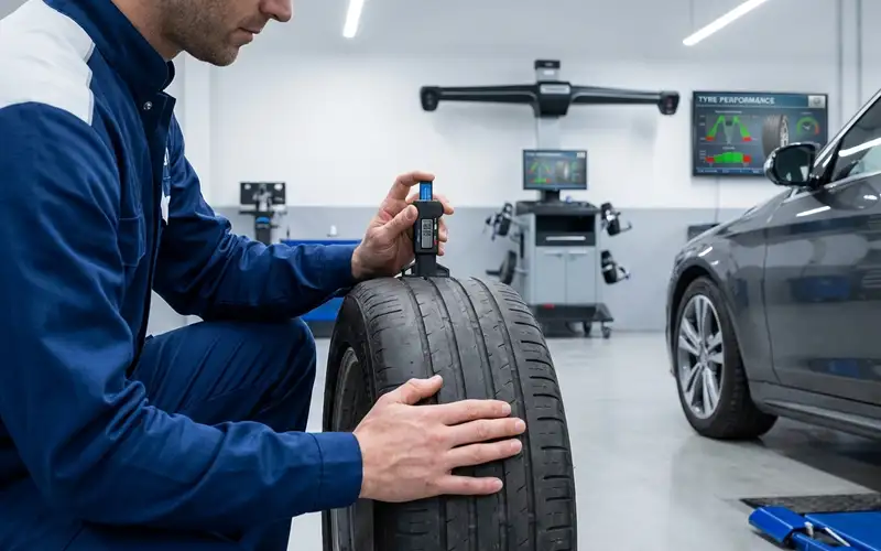 Schedule online, by phone, or WhatsApp. Our technician inspects tyre tread, wear patterns, and visible damage on arrival.