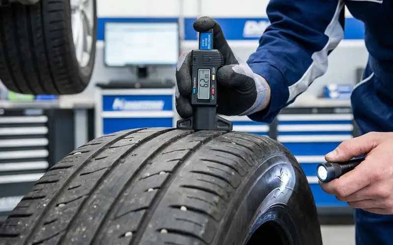Schedule online, by phone, or WhatsApp. Our technician inspects tyre tread, wear patterns, and visible damage on arrival.